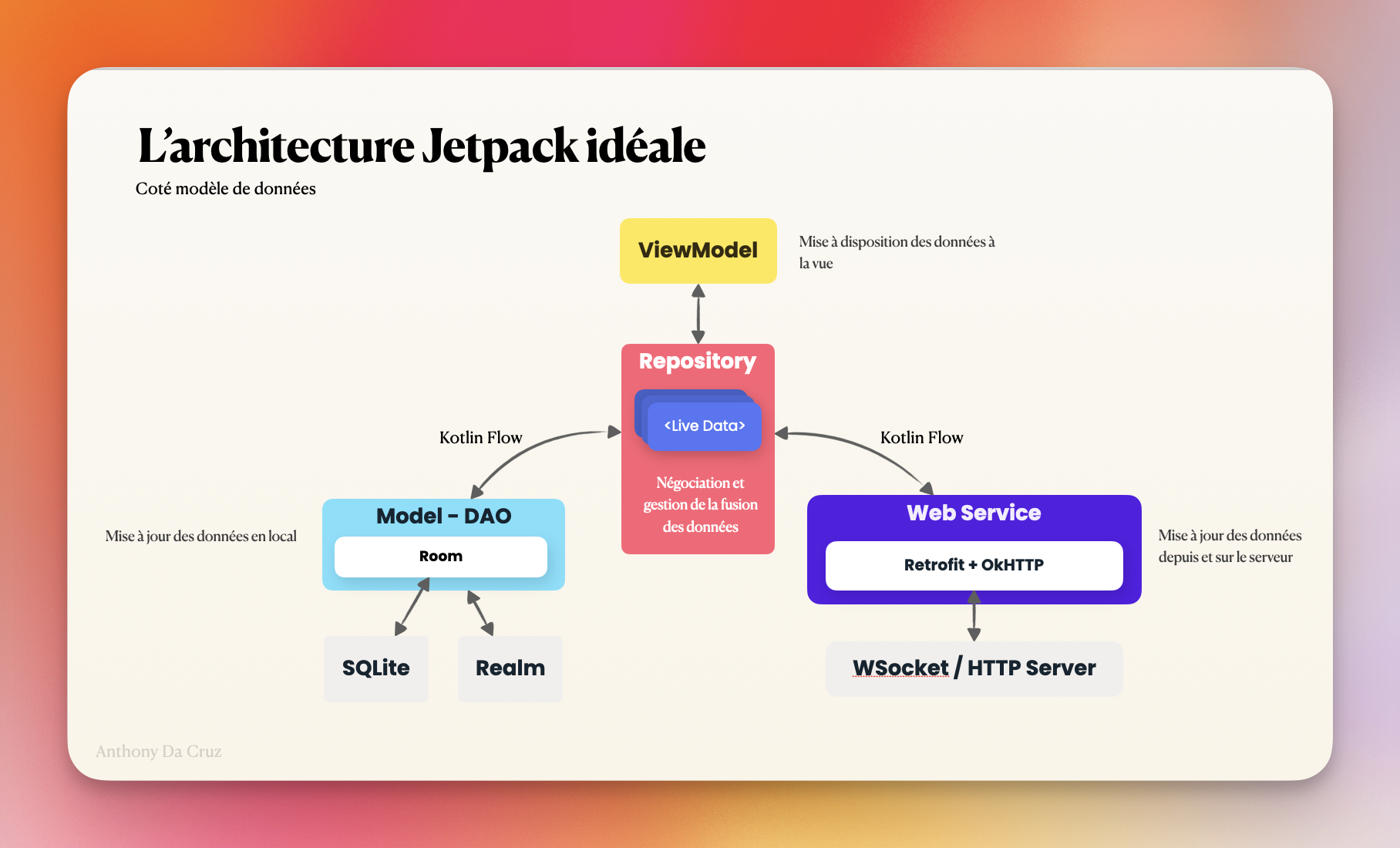 Au niveau du data layer, Google Ă choisi de conserver les mĂŞmes principes que ceux de la Clean Architecture.